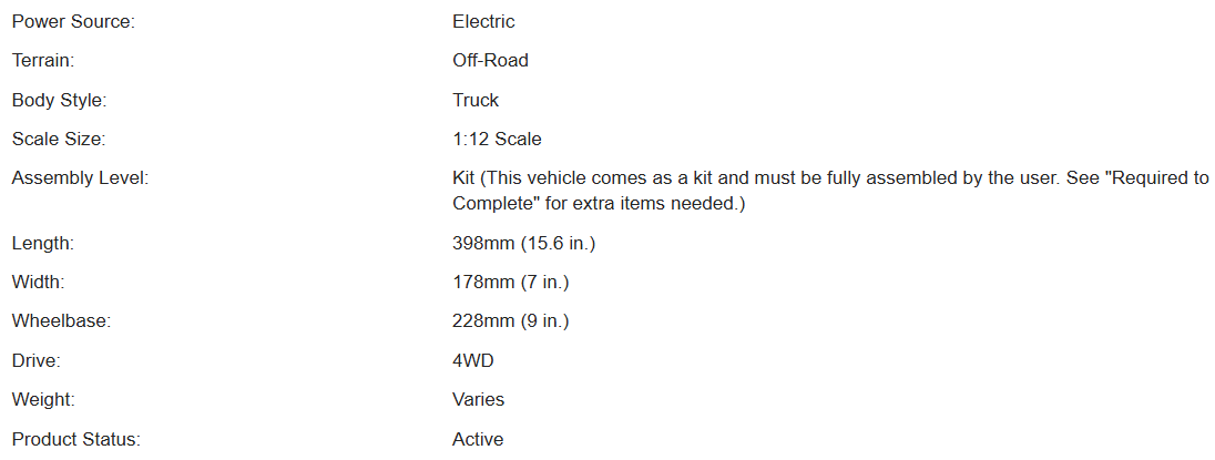 Associated 40015 1/12 RC10 4X4 Electric Off-Road Pickup Truck Kit