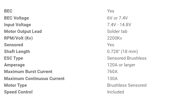 Comes bundled with Spektrum Firma 2200Kv Brushless Motor
